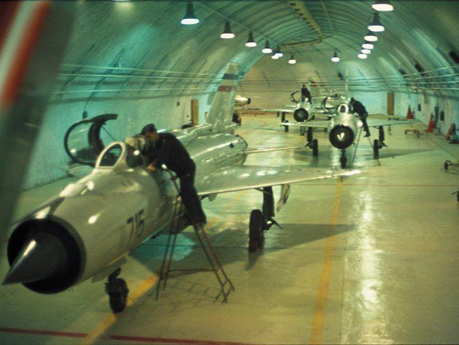 Four massive entrances, protected by 100-ton pressurized blast doors, allowed aircraft to taxi directly into the mountain. Three entrances were designed specifically for fixed-wing aircraft operations. The base was originally intended to eventually support the domestically developed “Yu Supersonik” aircraft project.